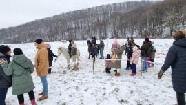 (17.1.2013) Každoročné novoročné prechádzky prírodou oslávili už tohto roku 20. narodeniny. Milovnívci turistiky, zvierat a prírody sa 6. januára tradičnou poľnou aj lesnou cestou zo Skároša vydali na nenáročnú túru na lúku pri Hrabove. Tam sa deti povozili na poníkoch, vyskúšali si vedomosti o prírode, v okolitých krmeľcoch nechali čosi pod zub našim zvieratkám a spoločne sme si pochutnali na výbornom guľáši. Adrenalín na lanovej šmýkalke, streľba z malokalibrovky či vzduchovky, výstava dravých vtákov boli príjemným oživením vydarenej Srnčej stopy. Nech žije tá ďalšia Srnčia stopa v roku 2014! Fotografie z akcie nájdete tu.