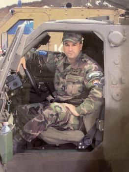 Na snímke Pavol Čigaš v obrnenom vozidle slovenskej výroby Aligator.