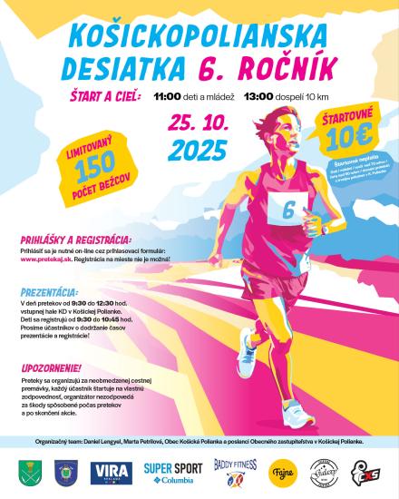 - V Košickej Polianke sa beží 6. ročník Košickopolianskej desiatky, deti štartujú o 11:00 hod a dospelí o 13:00 hod. Na bežcov čaká 10 km trasa.